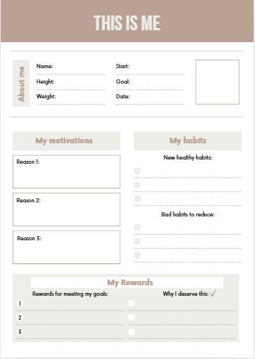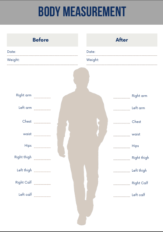 Log your meals, water, habits, and inches lost with guided tracking pages.