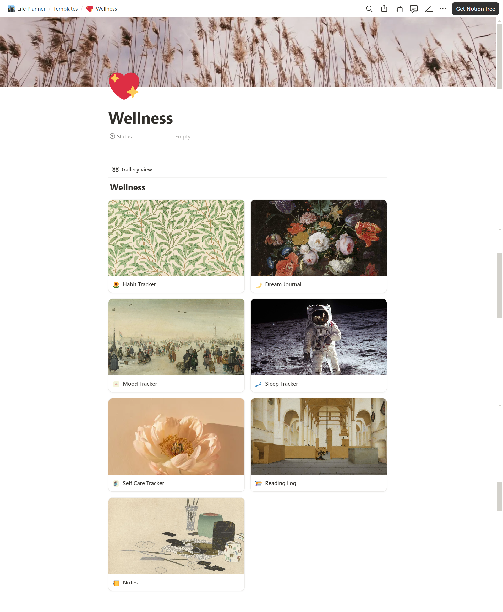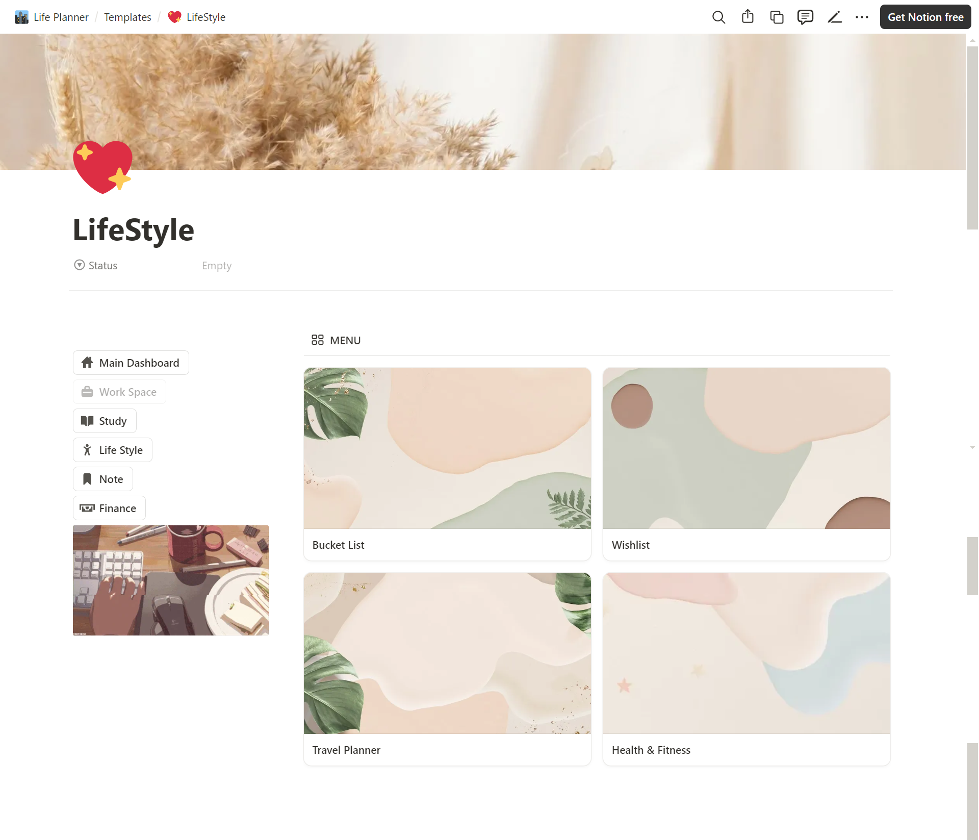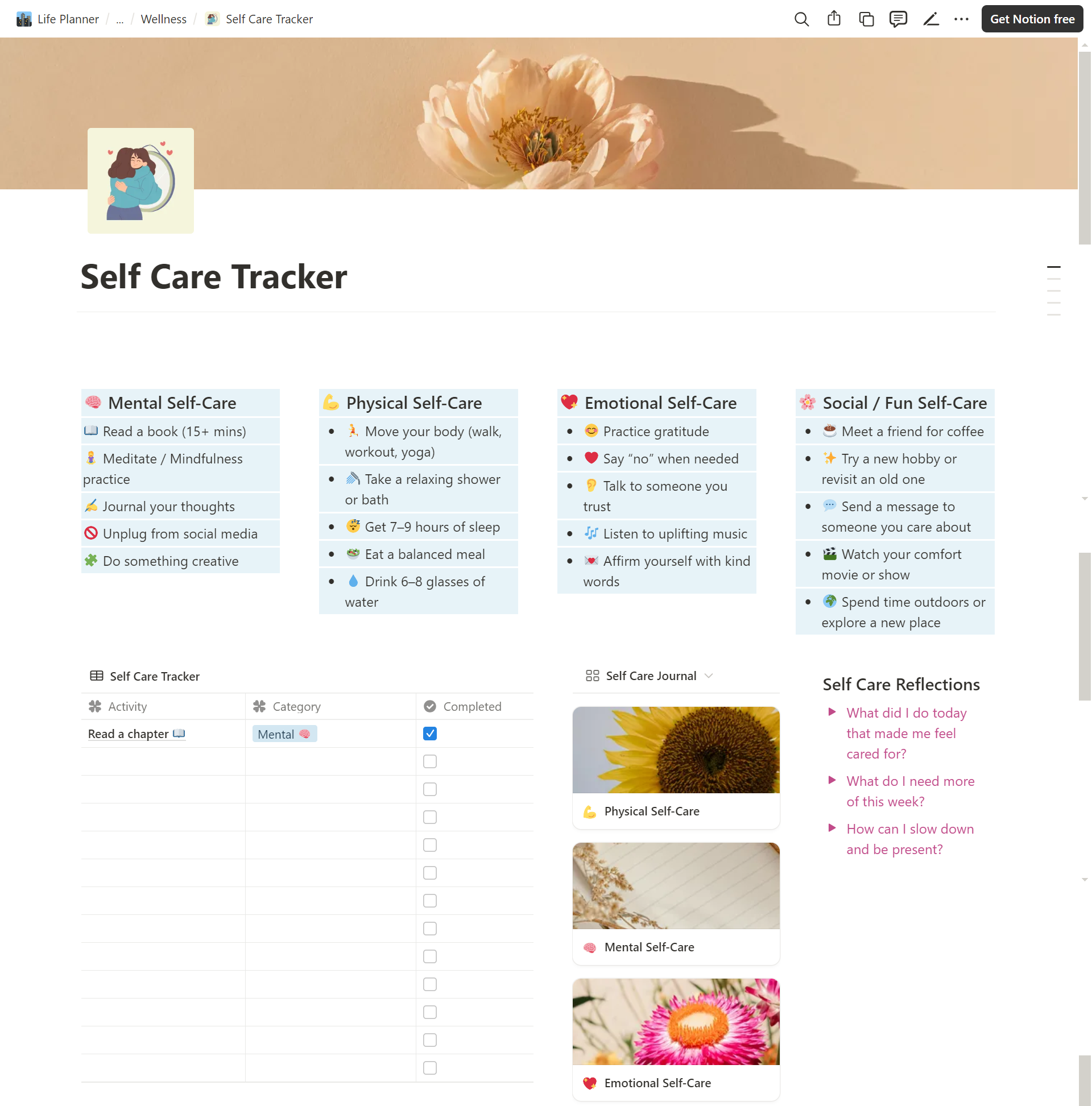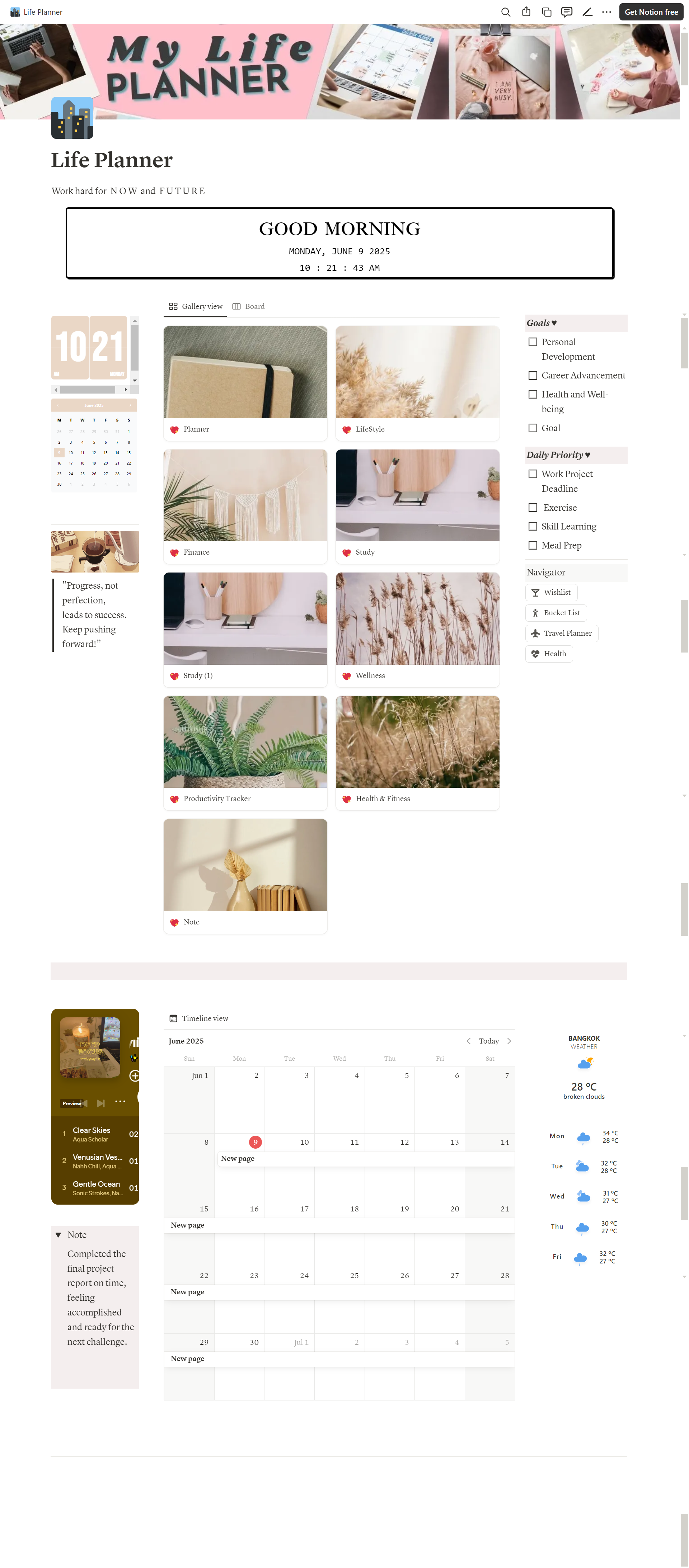 This all-in-one Notion planner is designed to help you manage your goals, routines, wellness, mindset, and more—from one beautifully organized dashboard.